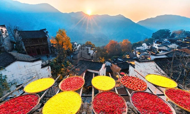 07:30-08:00 屯溪市区各酒店接客,赴婺源景点的杰出代表——篁岭(车程1小时20分钟左右)